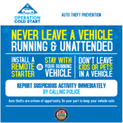 “Leaving your vehicle running to keep it warm can be convenient for thieves looking to steal transportation to commit additional crimes,” says S/Sgt. Luke Halvorson, Alberta RCMP Community Safety and Well-being Unit. “Operation Cold start aims to reduce auto theft by educating Albertans on steps they can take to help keep their vehicle safe.”