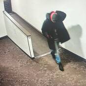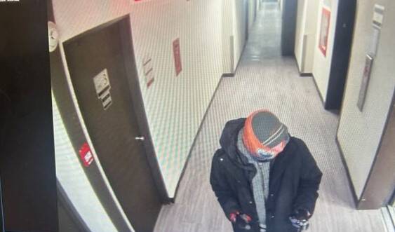 Surveillance footage of the parking area was obtained by RCMP, and an unknown male was observed in the area around 4:15am. The male is described as approximately 25 years of age, brown hair, wearing a brown winter toque, orange scarf covering his face and a long black winter jacket, blue jeans and black boots.