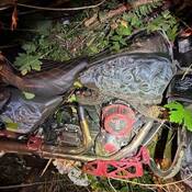 The crash occurred on September 13, 2025, at 7:31 p.m., when a Harley Davidson with custom skull-and-smoke paint collided with a white, early-model Chevrolet S-10 pickup on Island Highway West near Mistaken Road.
