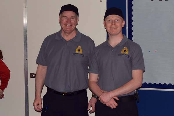 Doug McWilliams and Alex Schrenk are two volunteers who recently graduated from the Tier 1 program and became the first two members to participate in an RCMP community event. On Thursday morning they appeared at the Emergency Service impaired driving simulation at OKM high school, assisting police and EHS during the outside demonstration, then moved inside the school to talk to students about a possible career with the RCMP.