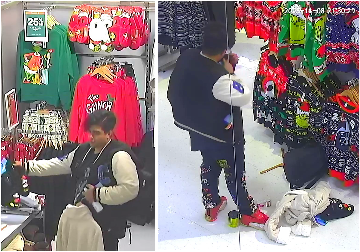 Around 9:30 pm on November 8, a loss prevention officer from a grocery store in Mission called police about a shoplifter that had just left the store. He could not be located in the area. Through a review of CCTV footage, the employee was able to confirm that the offender had stolen over $420 in merchandise. The offender is described as a South Asian male, wearing a black and white varsity jacket with a large “C” on the front, black pants with unique writing on the legs, and red and white shoes. Anyone who recognizes the male in the attached photos is asked to contact Mission RCMP, 604-826-7161, file 25-14232.
