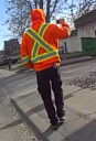 Police received complaints from the public and business owners about this individual, reporting an intimidating and disturbing behaviour. He is usually wearing an orange high-visibility style sweater.