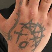 - Various tattoos on right hand