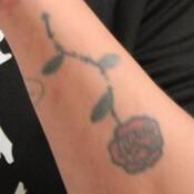 - Tattoo of a rose on left forearm
