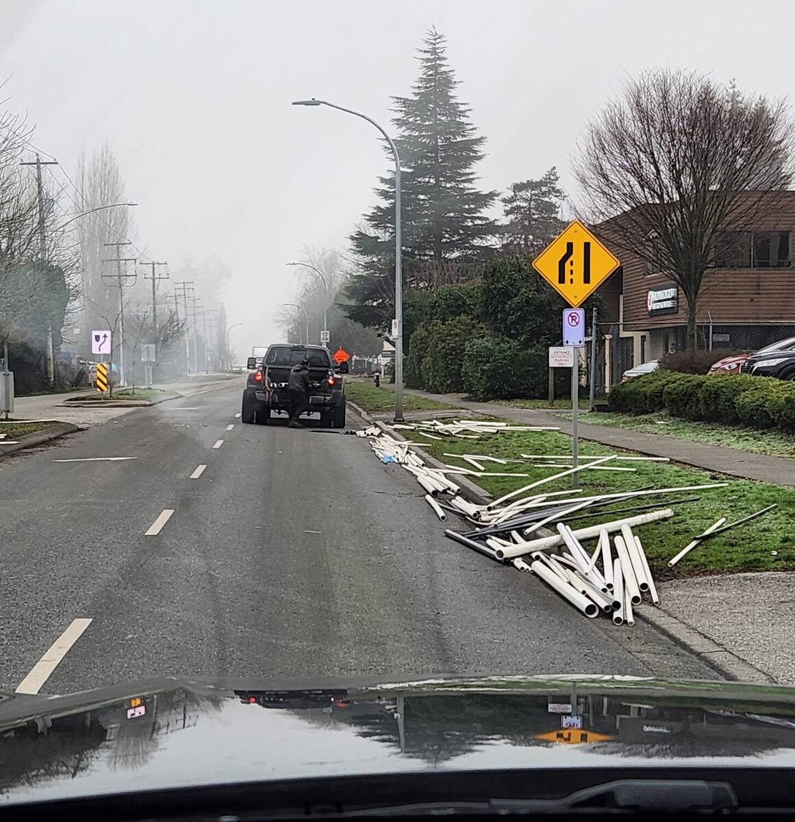 In another incident, a load of unsecured PVC piping spilled across No. 5 Road from the back of a pickup truck, forcing officers to briefly block traffic while the driver cleared the roadway and re‑secured the cargo, before receiving a ticket for operating a non-commercial vehicle with insecure cargo.