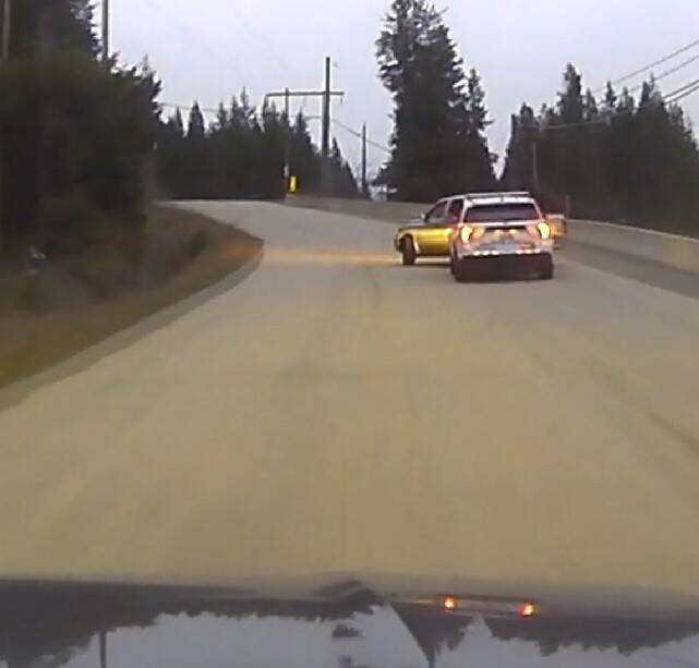 At 7:23pm a new report of an erratic silver Dodge Dakota southbound on Hwy 97B came in, last seen on Ranchero Dr E. Salmon Arm RCMP acquired the vehicle on Sonora Rd and followed it to Black Rd where it slammed on the brakes causing a collision between the police vehicle and the truck. The truck then began dragging the police vehicle with it. A second police vehicle arrived on scene and was hit by the truck as well which then broke free and continued southbound on Hwy 97B.