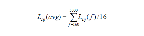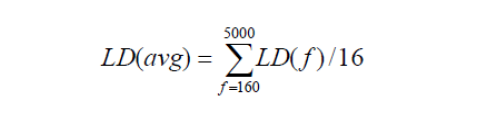 b) For each receiving point, calculate LD(avg), the average level difference over the 16 1/3- octave frequency bands from 160 to 5000 Hz from using Equation # 16 below,
