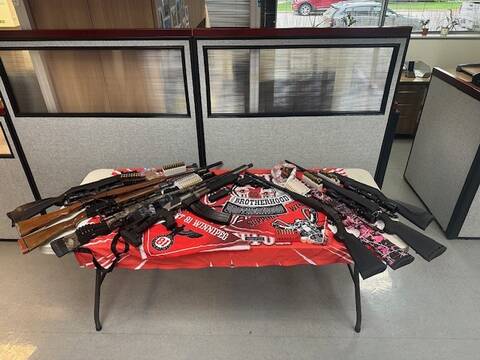 Inside the residence police seized numerous firearms that were unsafely stored, a prohibited magazine, a conducted energy weapon, and organized crime paraphernalia.