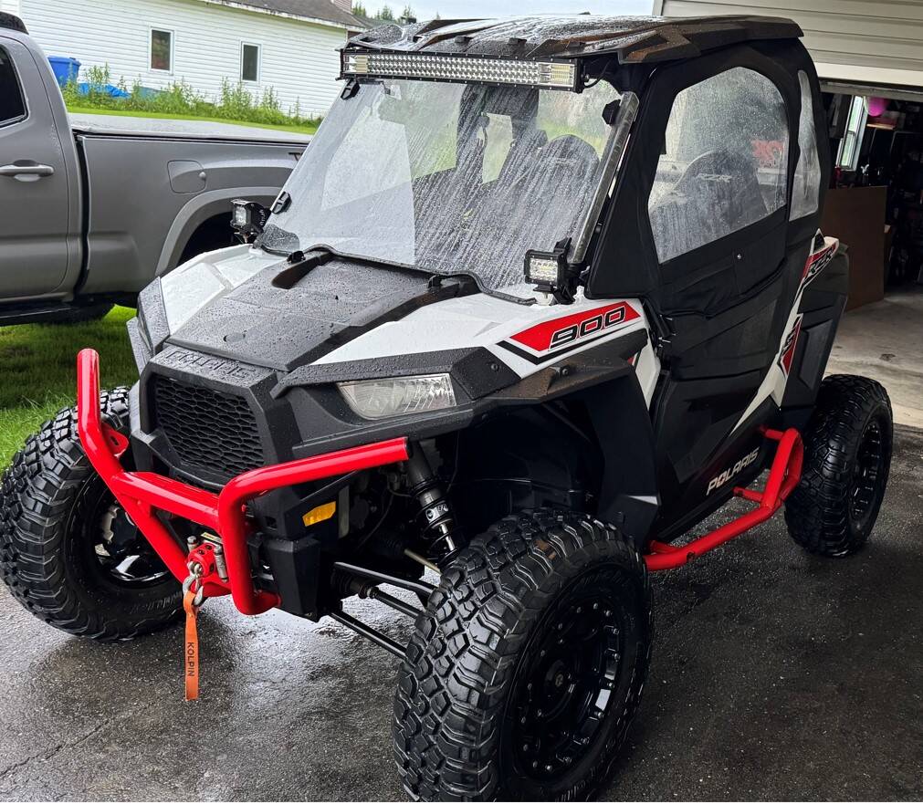 The side-by-side is described as a 2020 black,white and red Polaris RZR with New Brunswick licence plate YC9104, and vehicle identification number 3NSASA873LH204404.