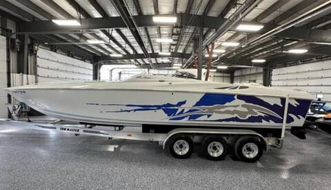 The boat is described as a white and blue 2006 Baja Outlaw 33', with hull identification number NH3729BI.