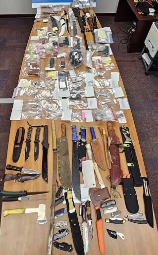 - A quantity of prohibited weapons, including brass knuckles, a stun gun and a switchblade knife