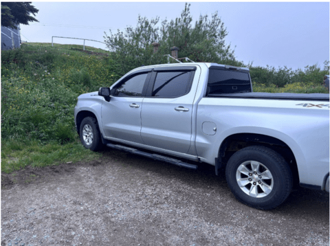 During the early morning hours of Friday, July 4, 2025, a fire was set in the back of a silver 2020 Chevrolet Silverado pickup truck parked on Hares Road in Burgeo. During the investigation, a bottle filled with an accelerant was found in the vehicle, which experienced interior damage as a result of the fire. An image of the truck is attached.