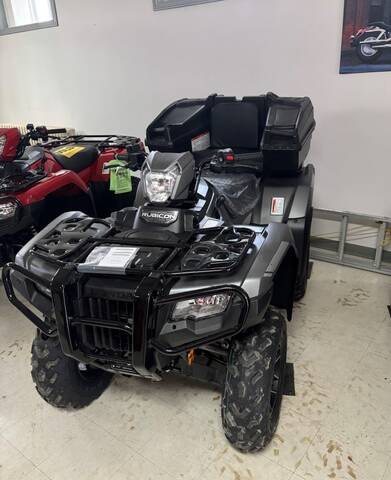 A stock image of a red Honda Foreman ATV, and a photo of the stolen grey 2025 Honda Rubicon ATV are attached.