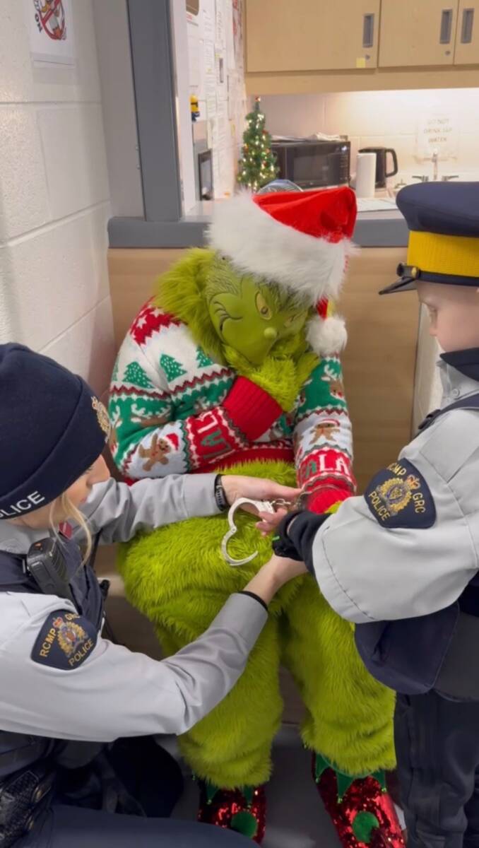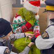 Later in the day, Conor responded to a call at the Smallwood Community Centre, where he made his very first arrest — The Grinch himself was caught causing trouble!