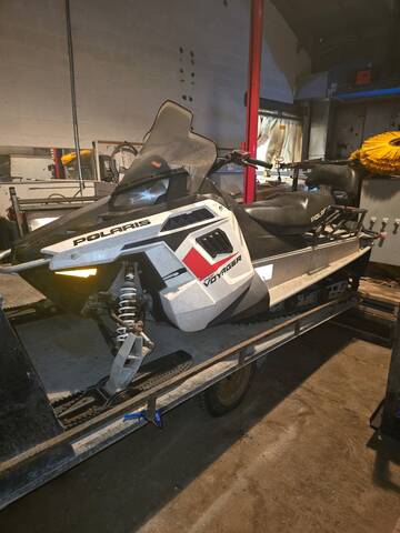 The snowmobile is a 2014 Polaris Indy Voyager 550. A photo of a similar machine is attached.
