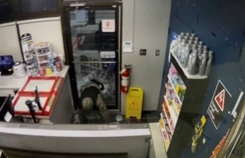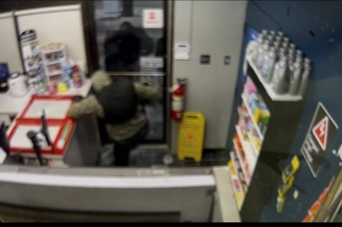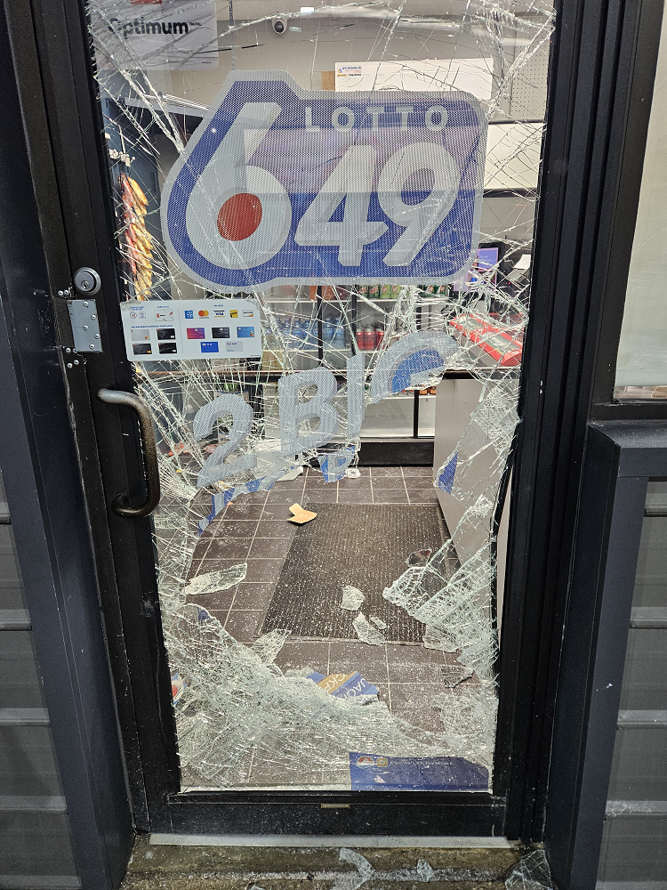At approximately 4:17 a.m. on Monday, Bay St. George RCMP responded to a break and enter at the Bargain Center gas bar on Carolina Avenue in Stephenville. Video surveillance from the incident shows three masked suspects using an item and their feet to smash the front glass window of the store to gain entry. Once inside the suspects caused further damage and stole product before fleeing the scene.