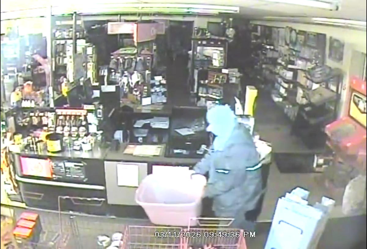 On March 12, 2026, police responded to a report of a theft from the Greenwood Home Hardware Building Centre located on Forest Drive in Lethbridge. An individual was captured on video surveillance breaking glass, entering the store and removing multiple power tools.