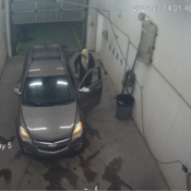 Video surveillance footage from the business shows the suspect entering the car wash building and using a vehicle to forcefully remove a coin change machine from the wall. The vehicle is a mid-sized SUV, believed to be a Chevrolet Equinox, possibly a 2009 to 2015 model.