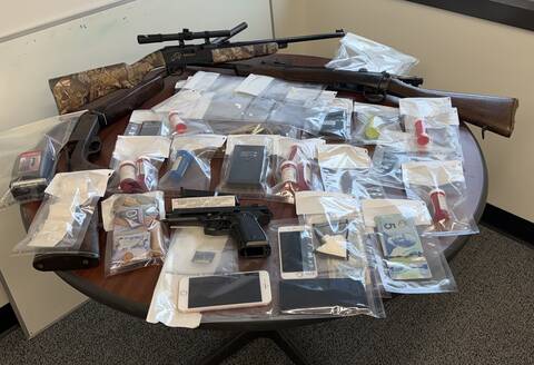 Two people were arrested Thursday after a traffic stop and the search of a residence in Summerford resulted in the seizure of drugs, firearms and items consistent with drug trafficking.