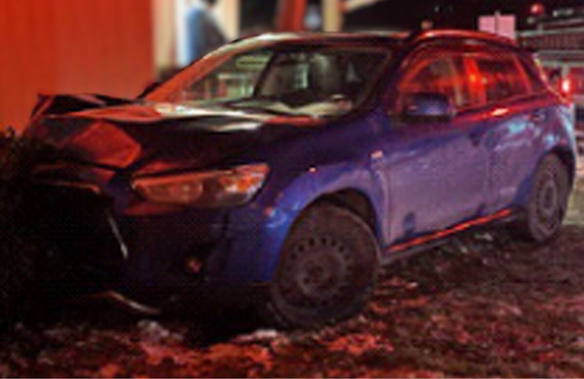 When officers arrived, they found a blue Mitsubishi RVR had left West River Rd. and hit the home, causing damage to the porch and siding. Investigators learned that two or three people exited the vehicle, removed the plate, and left on foot before police arrived.