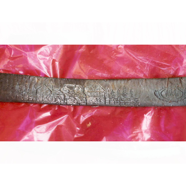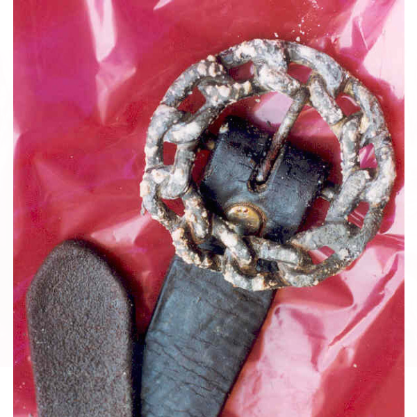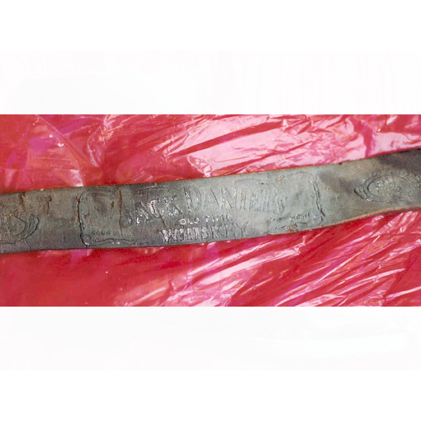 - Black leather belt with large chain shaped "Jack Daniels" belt buckle, belt for size 36 inch waist